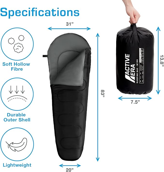 • Comfortable Camping Sleeping Bag; Lightweight 150gsm hollow fiber lining ensures a comfortable and cozy night's sleep.