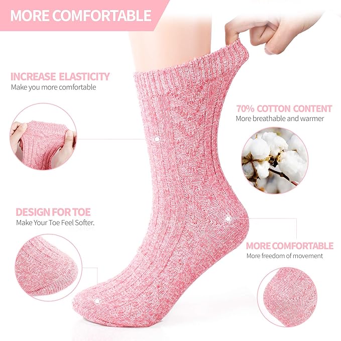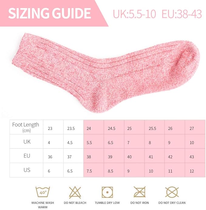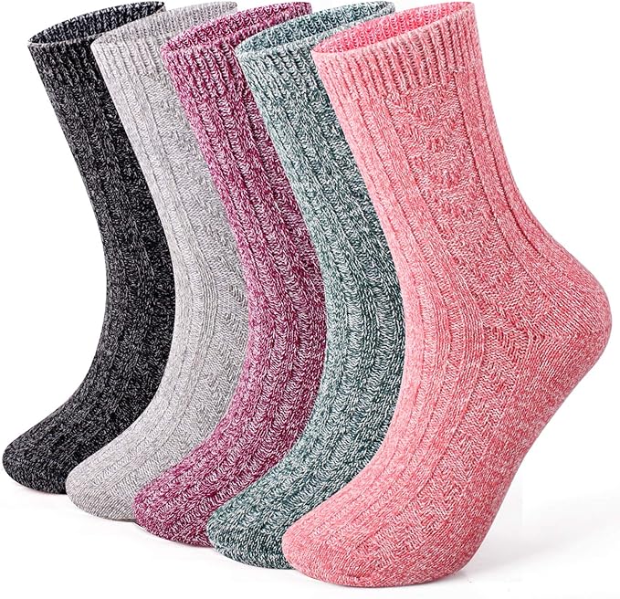iLife AK 5 Pairs Women's Thermal Wool Socks UK Size 5.5-10 Multipack (Pink/Green/Purple/Grey/Black, 5-10)