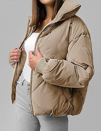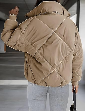 ️ **WARM AND INSULATED**: This short puffer jacket is filled with down for superior warmth and comfort. Its quilted design ensures you stay comfortable during the cold winter months, while remaining lightweight. 🔒 **Front Zip**: The jacket features a convenient zipper closure for easy on and off. The zipper is durable and ensures a secure fit, adding a practical touch to its sleek design. 【 **CROP AND STYLISH**: The cropped cut gives this jacket a modern and stylish look that pairs well with jeans or high-waisted skirts. Perfect for adding a touch of elegance to your winter wardrobe. **LONG SLEEVES**: With long sleeves, this puffer jacket provides full arm coverage and extra warmth. The sleeve design enhances comfort and protects you from the cold. 🌟 **VERSATILE WINTER OUTERWEAR**: Perfect for a variety of occasions, this short coat is both fashionable and practical. Its stylish design makes it a versatile addition to your winter wardrobe, suitable for casual outings or everyday wear.