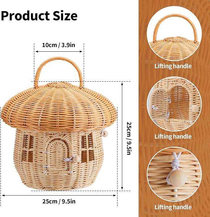 Tinybrooks Handmade Mushroom Wicker Storage Basket for Outdoor, Kids, Decor, Photography Props
