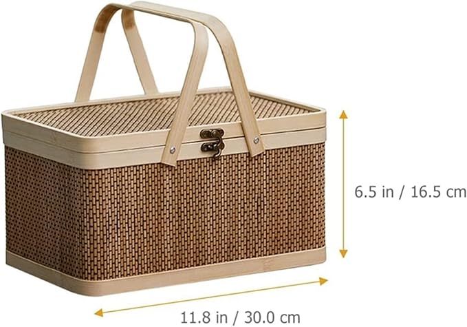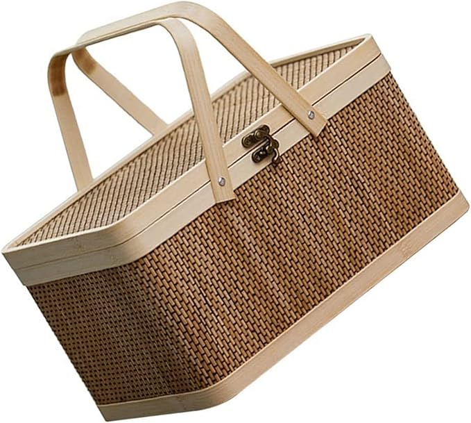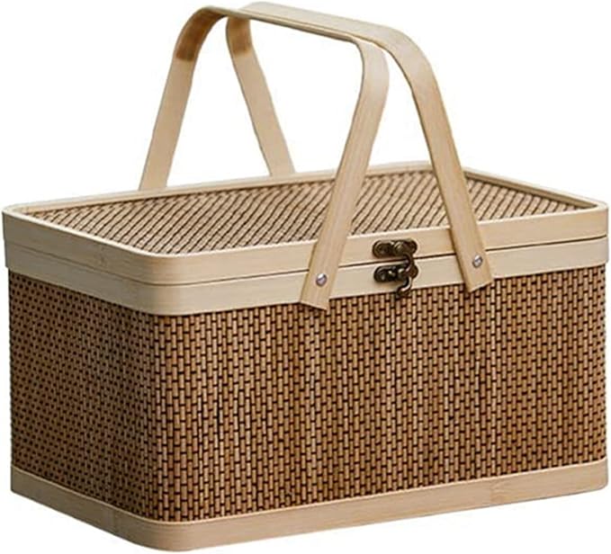 YOLNI Woven Picnic Basket with Lid, Portable Picnic Basket for Snacks, Bread Storage