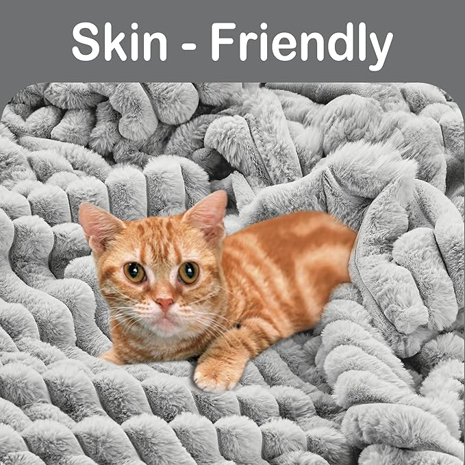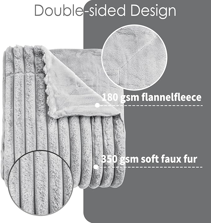 Soft Warm Faux Fur Blanket, Soft Striped Fleece Blanket for Sofa Bed Living Room, Grey - Double Size 150 x 200 cm