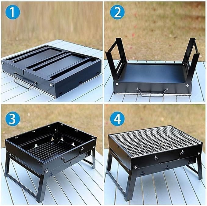 【EASY TO INSTALL】: No screws required and easy to install, simple 2-step setup makes this grill a must-have for grilling on the go. When unfolded, it forms a four-corner support structure on the ground to stay stable during use. Removable grill and mess-free ash catcher for easy cleanup.