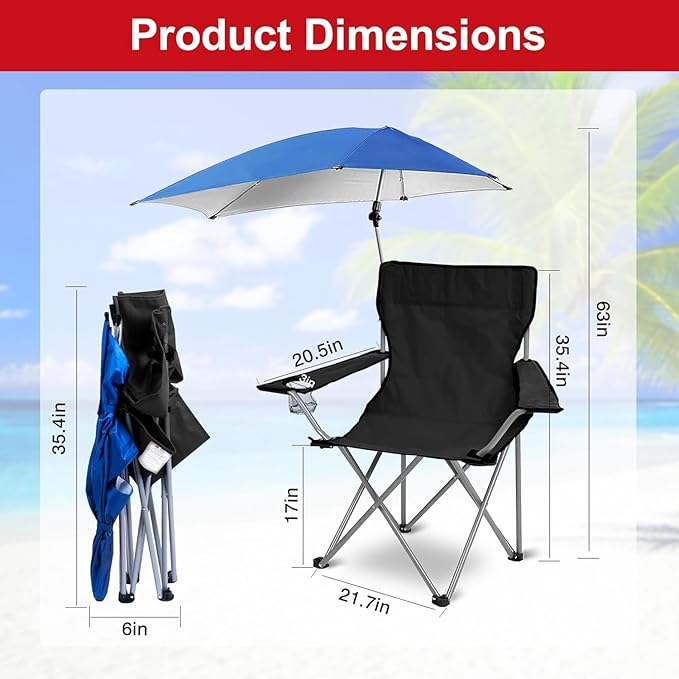 Cool Baby Large Folding Chair for Outdoor Leisure, Portable Folding Fishing Chairs with Detachable Umbrella, for Beach, Patio, Pool, Garden, Outdoor Camping, Black
