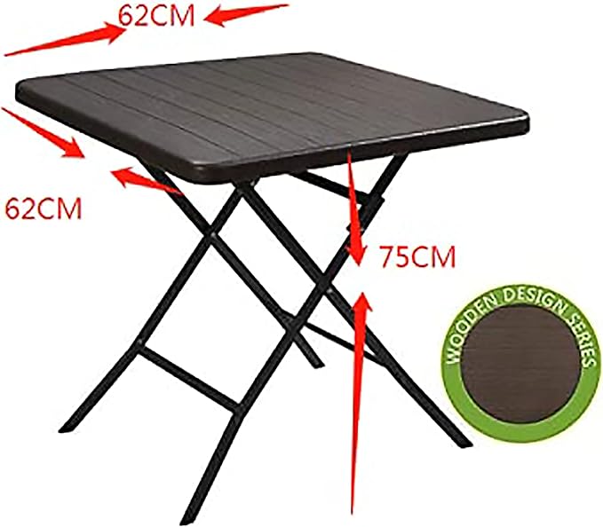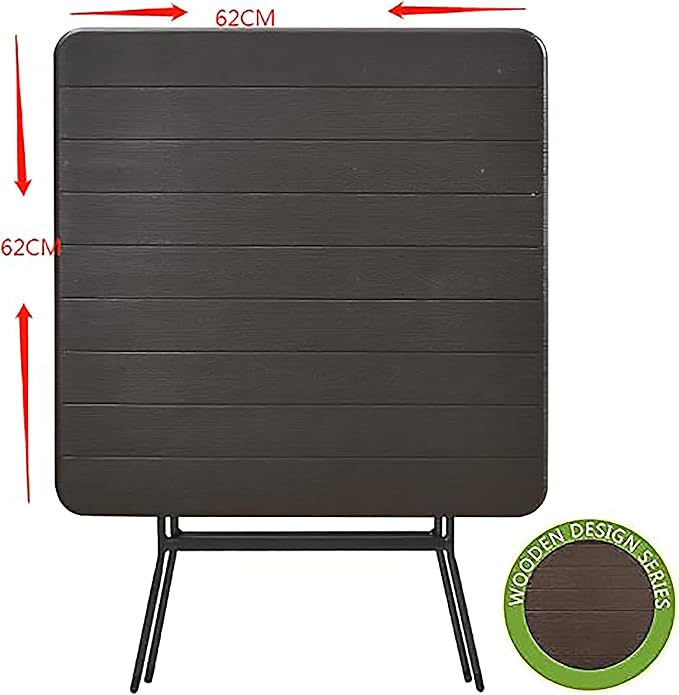 Lanny Portable Folding Plastic Table with Wood Design 62 x 62 cm for 2-4 People for Parties, Picnics, Garden, Dining, Kitchen, Buffet, Restaurants (Brown 3)
