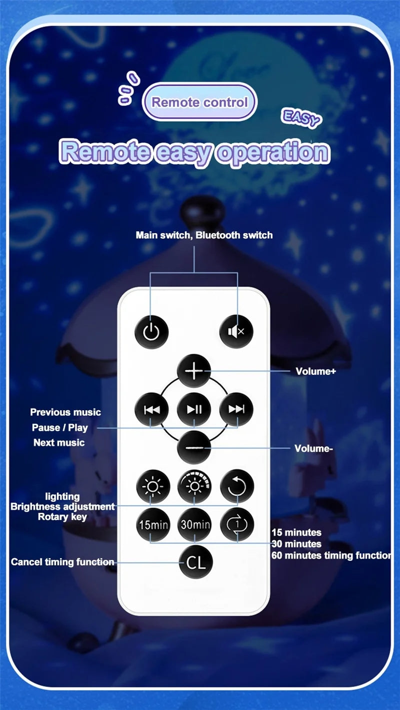 The star light projector for bedroom has 12 films and many lighting modes. Sound machine baby projector fills the ceiling with magnificent stars & moon, unicorn, ocean, Mermaid, Birthday, Dinosaur, Astronaut.. turning the bedroom into a dream star projector. Night light easily covers the entire room and kids will be mesmerized by the image of projector light. Star projector night light baby With soothing sounds played by the starlight projector, the star lights for bedroom helping them overcome their fear of falling asleep alone.