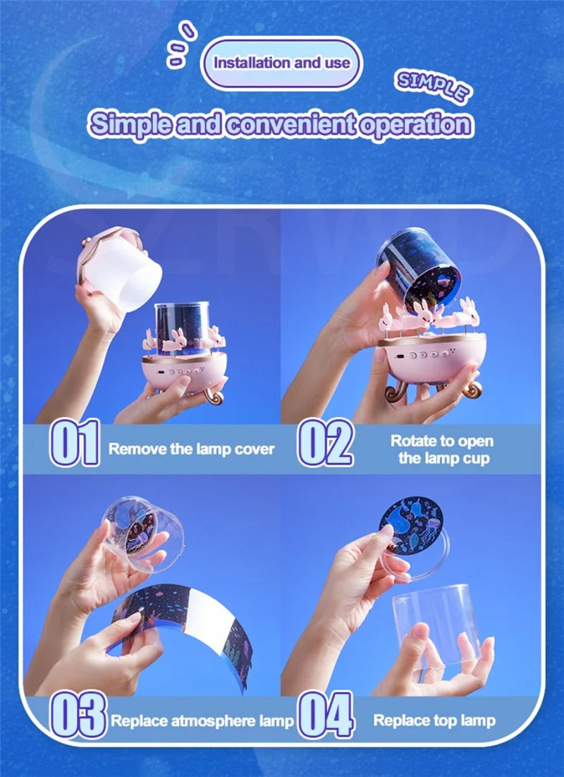 The kids projector night light for kids with 1200mAh built-in battery can be charged by TYPE-C port, power bank or laptop. Once charged, the star projector night light projector can be used for 4-10 hr! The star projector for kids needn't change the 3A battery. Also, u can take this baby night light & star lights for ceiling anywhere CORDLESS. The nightlight for kids room is rechargeable, thus baby can hold the baby night light for baby nursery & star lights for ceiling as sleeping buddy WITHOUT CORD!