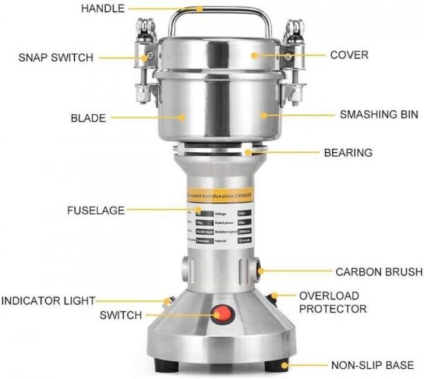 This high quality electric grinder enables you to grind all spices, coffee and grains in a short time and saves you the trouble of going to the market to grind them.